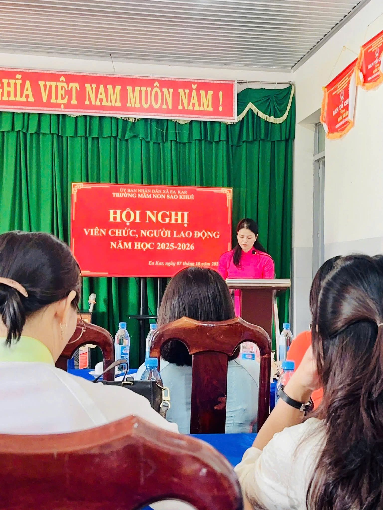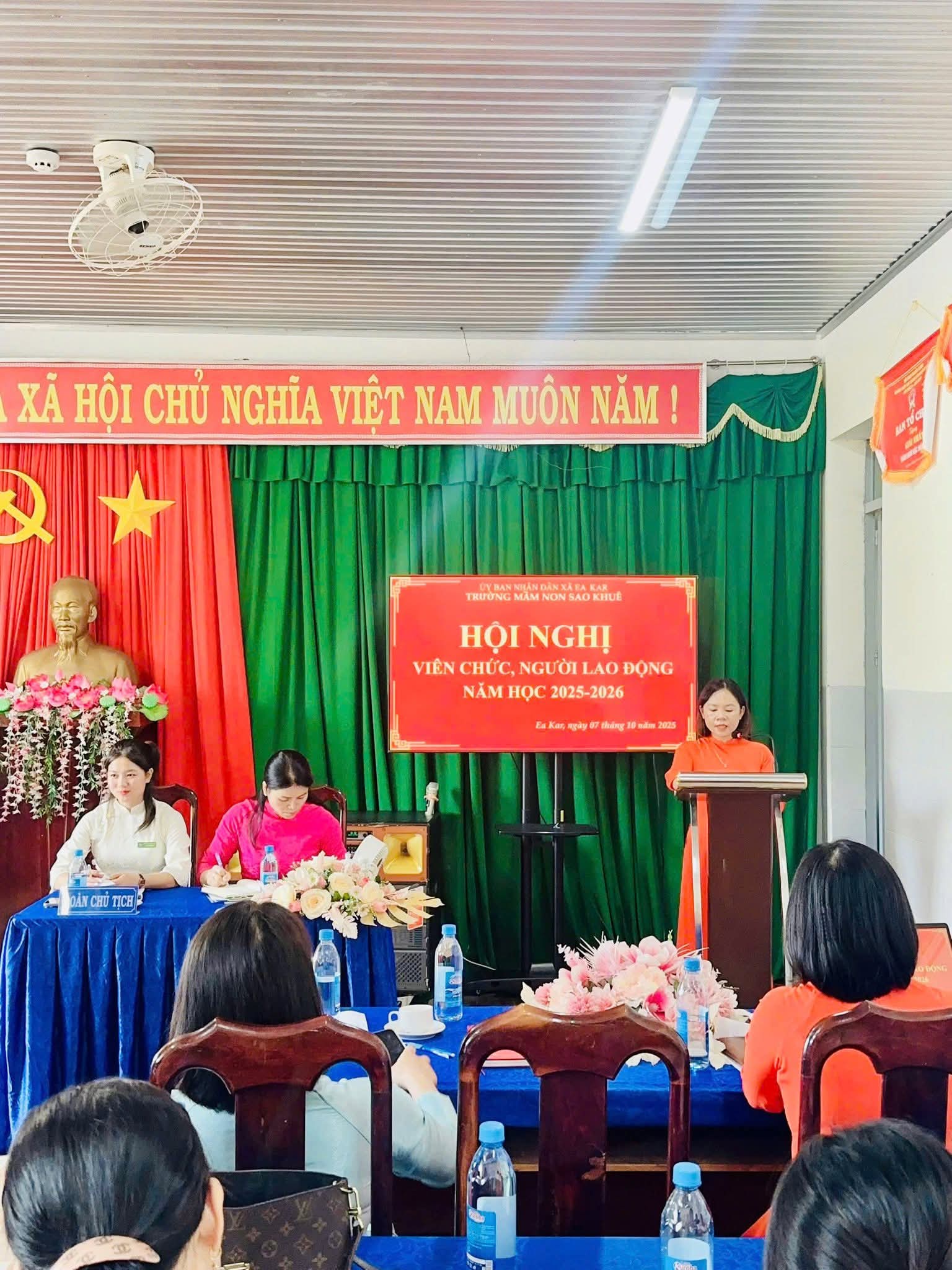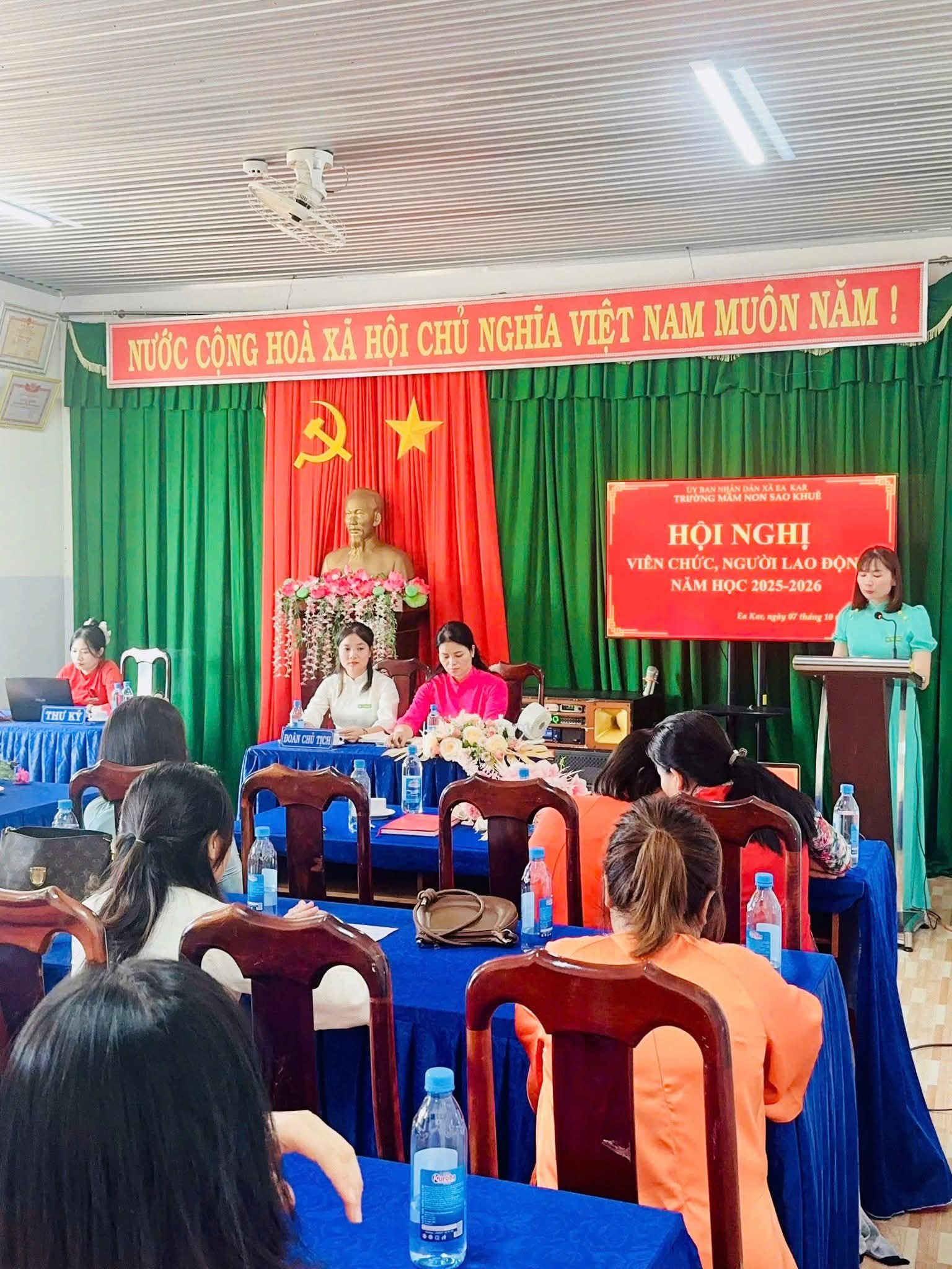 Sau thời gian làm việc nghiêm túc, dân chủ và đầy trách nhiệm, Hội nghị cán bộ, viên chức, người lao động trường Mầm non Sao Khuê năm học 2025 – 2026 đã thành công tốt đẹp. Hội nghị biểu thị sự thống nhất cao với các chỉ tiêu, nhiệm vụ đã đề ra, thể hiện quyết tâm của tập thể nhà trường trong việc không ngừng nâng cao chất lượng chăm sóc, nuôi dưỡng và giáo dục trẻ, góp phần xây dựng trường Mầm non Sao Khuê ngày càng phát triển vững mạnh.