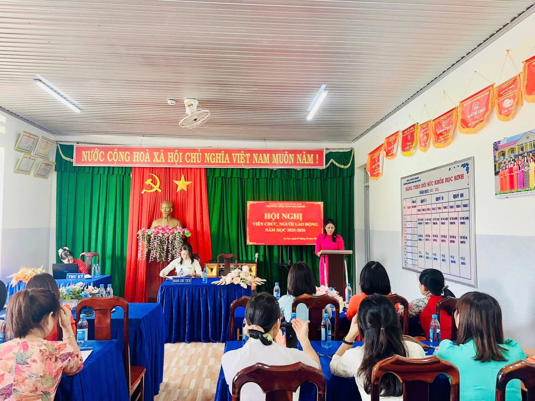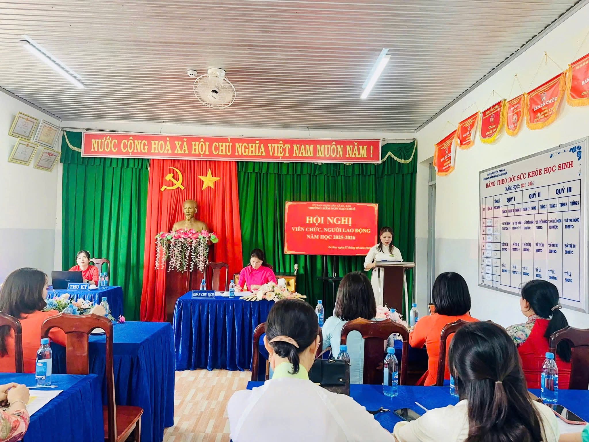 Tại hội nghị, đồng chí: Hoàng Thị Sinh- BTCB- Hiệu trưởng nhà trường đã trình bày báo cáo tổng kết năm học 2024 – 2025, nêu rõ những thành tích nổi bật của nhà trường trong công tác chăm sóc – giáo dục trẻ, xây dựng đội ngũ, công tác bán trú, cơ sở vật chất và các phong trào thi đua. Báo cáo cũng chỉ ra những khó khăn, tồn tại và đề ra phương hướng, nhiệm vụ cụ thể cho năm học 2025 – 2026, với mục tiêu tiếp tục nâng cao chất lượng giáo dục toàn diện, xây dựng môi trường học tập thân thiện, an toàn và hạnh phúc cho trẻ.