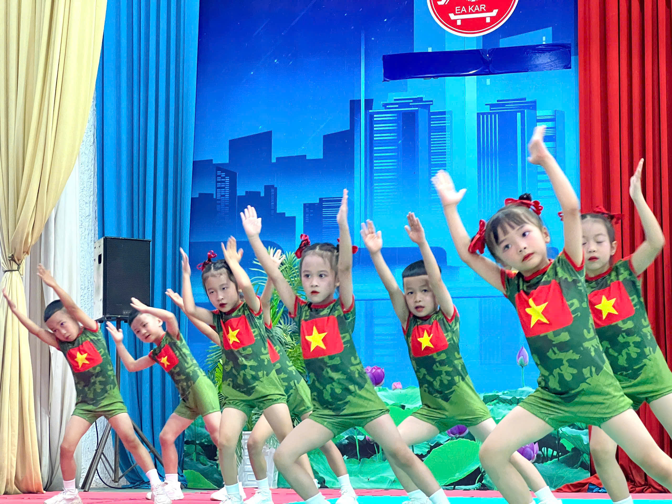 Các bé thể hiện sự tự tin, phối hợp nhịp nhàng cùng những động tác đẹp mắt, nhận được nhiều sự cổ vũ và đánh giá cao từ Ban tổ chức.